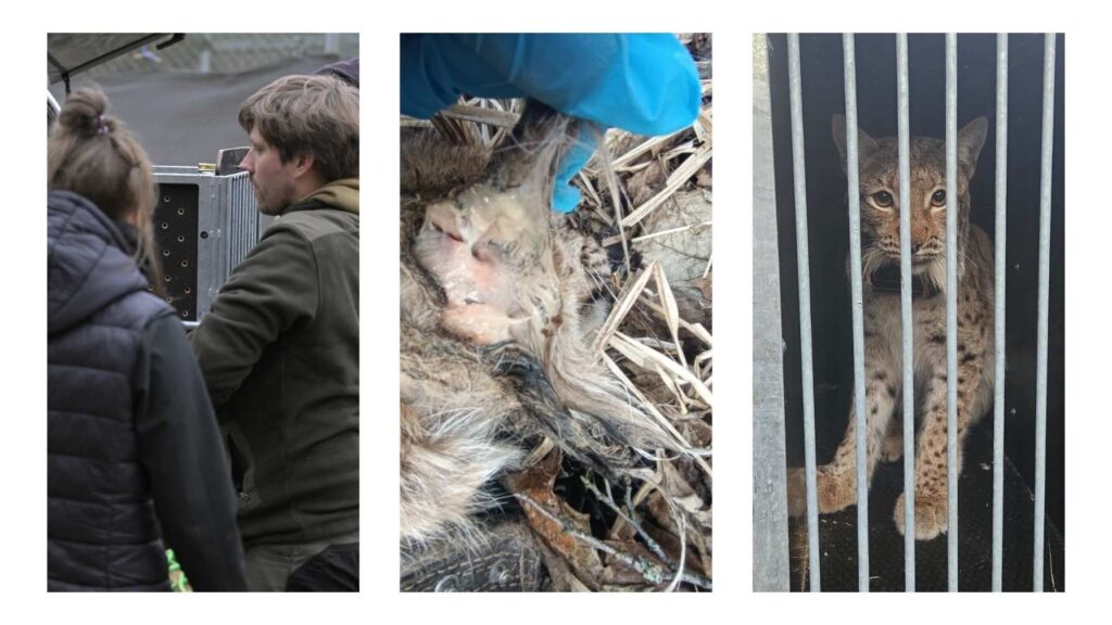 Odłowienie Lupka – marzec 2026, na środkowym zdjęciu rana utrudniająca zwierzęciu polowanie oraz jedzenie